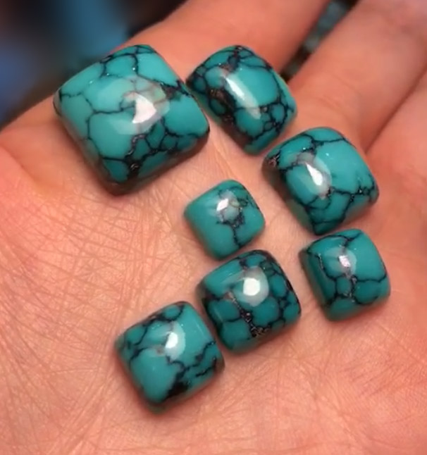 绿松石行业中还有一种特殊铁线纹路的绿松石,叫做spider web(蛛网纹),其美在铁线纹路如蜘蛛网般紧密交织,自然演化出各种美感,很多绿松石爱好者对它情有独钟、爱慕不已。