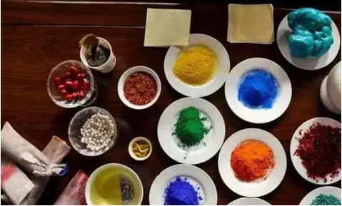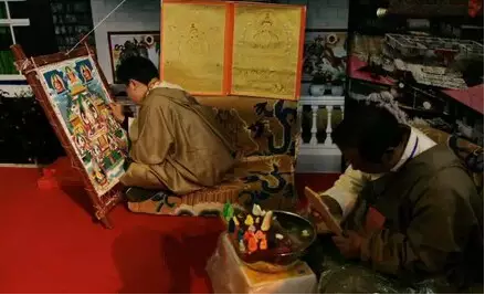 西藏唐卡的颜料大多用天然有色宝石或矿石制成