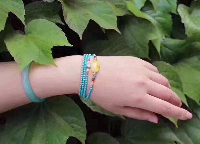 1、假期亲朋好友聚会聊的开心,一时兴起,喝点小酒,越聊越开心,感情深一口闷,难免不小心就喝高了,这时就要小心不要磕碰到绿松石配饰,特别是手串,绿松石硬度低,很容易被划伤,甚至碰碎。如果可以,尽可能不要把绿松石手串戴在身上。