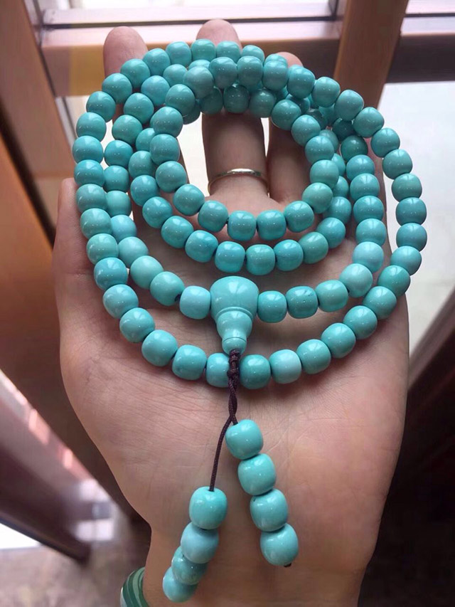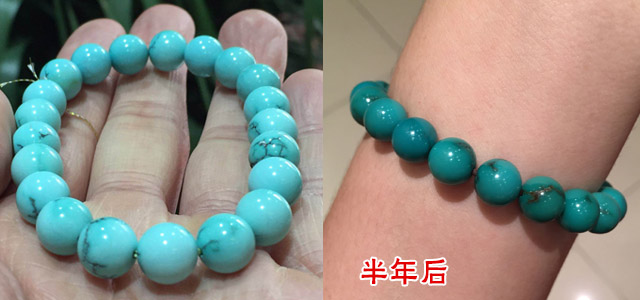 绿松石相对来说是比较娇气的玉石,硬度低、易染色,喜水又怕高温,致使它盘养起来颇为讲究。所以对于很多消费者来说,他们最关心的还是绿松石的包浆问题。