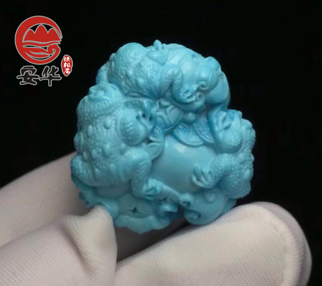 秦古料的特点:秦古的松石特点,瓷度特别高,而且"瓷釉"的松石出产率最高,还有果冻的级别,镜面瓷度,瓷度非常的高,盘完的颜色多为深绿,不过目前秦古808,919矿的松石出产率已经很低了,因为常年的开采,已经所剩无几了。秦古料较有名的是"秦古绿"。