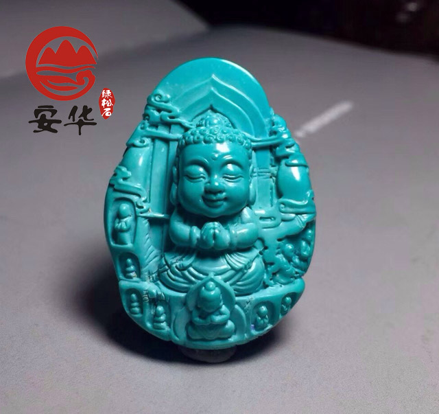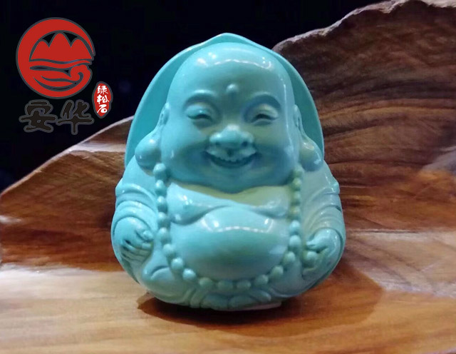 △精品高瓷高蓝绿松石雕件——弥勒佛