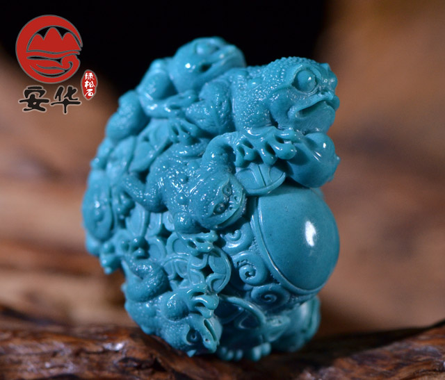 在绿松石成品市场,一看料质,二看工艺,只有精品原料配上精美的工艺,绿松石的收藏价值才会高。如果说一块精品绿松石的用料是决定性的基础,那“工”的精湛则赋予了精品绿松石新的活力。