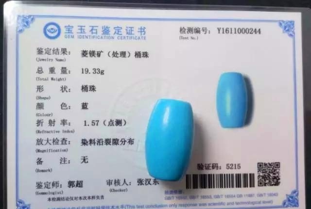 2、绿松石(处理或注胶、染色等),代表了绿松石经过了处理;